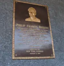 Rizzuto was modest about his achievements, saying, "I never thought I deserved to be in the Hall of Fame. The Hall of Fame is for the big guys, pitchers with 100 mph fastballs and hitters who sock homers and drive in a lot of runs. That's the way it always has been, and the way it should be."[28]