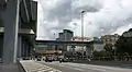 Approach to entrance B of the station, with the multi-storey park and ride building at left.