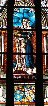 ![]() Queen Philippa as portrayed in the 1590s by Cornelius Krommeny | |