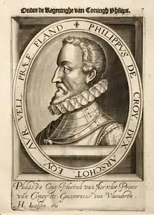 Philippe de Croÿ, 3rd Duke of Aarschot, 4th Prince of Chimay, Count of Porcean (Valenciennes, 10 July 1526 – Venice, 11 December 1595), was stadtholder of Flanders, and inherited the estates of the ancient and wealthy family of Croÿ. Becoming a soldier, he was made a Knight of the Order of the Golden Fleece by Philip II, king of Spain, and was afterwards employed in diplomatic work.