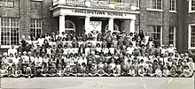 The original school building at the centenary in 1977 just before it was demolished