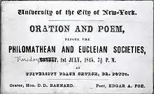 The Philomathean Society at New York University was a student society that was founded at New York University. (The Society shared its name with other college societies including the Philomathean Society of the University of Pennsylvania.) This society existed from 1832 to 1888.[1]