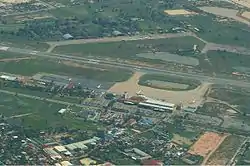The airport is at an elevation of 40 feet (12 m) above mean sea level. It has one runway designated 05/23 with an asphalt surface measuring 3,000 by 50 metres (9,840 ft × 160 ft).[3][4] The airport has two terminal buildings – one for international and one for domestic operations. Recently, it added a new facility for VIP service. The international terminal has four aerobridges built in 2003. Three more aerobridges were added during the passenger terminal expansion in 2016–2017. The airport's design capacity is 5 million people per year.