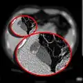 In medicine, a Phrygian cap is the folded portion of some gallbladders that resembles the Phrygian cap (a soft conical cap with the top pulled forward, associated in antiquity with the inhabitants of Phrygia, a region of central Anatolia). It is a normal anatomical variant seen in 1-6% of patients. It is caused by a fold in the gallbladder where the gallbladder fundus joins the gallbladder body.[1] Apart from the chance of being mistaken for stones on a sonogram, it has no other medical implications nor does it predispose one to other diseases. However, due to potential decrease in bile flow, it may warrant a preventive removal of the gallbladder.