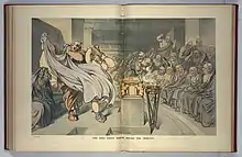 Another caricature followed in 1908, The High Tariff Phryne before the Tribunal.[4]