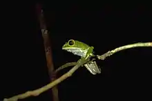 Phyllomedusa tarsius, also known as the tarsier leaf frog, is a species of frog in the family Phyllomedusidae. It is found in Brazil, Colombia, Ecuador, Peru, and Venezuela, and possibly Bolivia and Guyana. Its natural habitats are subtropical or tropical moist lowland forests, subtropical or tropical swamps, intermittent freshwater marshes, and heavily degraded former forest. It is threatened by habitat loss.