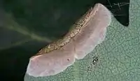 The larvae feed on Quercus petraea and Quercus robur. They mine the leaves of their host plant. They create a very small lower-surface, tentiform mine. The mine is usually situated near the leaf margin or in a leaf lobe. Mines of the summer generation have one fold, those of the fall generation have a large number of fine wrinkles. The pupa is made in a cocoon. The summer cocoon is small and white and fastened to both the floor and the ceiling of the mine. The cocoon made by the autumn generation is larger, yet more delicate, and is completely free of frass.