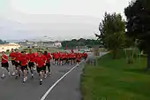 A physical training uniform is a military uniform used during exercise, calisthenics, drills, and in some cases, very casual periods of time (off-duty time during Initial Entry Training in the U.S. Army, for example). Most militaries, especially The United States Armed Forces and their ROTC and JROTC components require use of a physical training (PT) uniform during unit exercise (including formation runs, calisthenics, and conditioning exercises). Some American military units produce unique T-shirts with their unit insignia and motto, and for special events, this shirt is part of the uniform. Occasionally, exercise will be conducted in that branch's utility uniforms, normally with the blouse removed and the undershirt exposed (also known as "boots and utes" ). For unit runs, esprit de corps or special occasions, commanders may have personnel wear unique T-shirts with the distinctive unit insignia and unit colors.