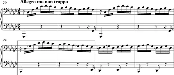 - An embellishment of the theme in sixteenth notes.