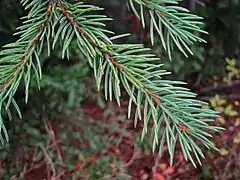 Picea engelmannii, with common names Engelmann spruce,[2] white spruce,[2] mountain spruce,[2] or silver spruce,[2] is a species of spruce native to western North America, from central British Columbia and southwest Alberta, southwest to northern California and southeast to Arizona and New Mexico; there are also two isolated populations in northern Mexico. It is mostly a high altitude mountain tree, growing at 900 metres (3,000 ft) – 3,650 metres (11,980 ft) altitude, rarely lower in the northwest of the range; in many areas it reaches the alpine tree line.
