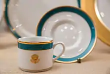 In 1977, Pickard was selected by the U.S. Department of State to manufacture the official service of china used by American embassies and other diplomatic missions around the world. The special decoration has an embossed gold border of stars and stripes and an embossed reproduction of the Great Seal of The United States. Pickard was also selected to produce exclusive fine china services for heads of state,[3][4] corporations, and hotels including The King of Saudi Arabia, Hilton Hotels, Sheraton Hotels and Resorts, Marriott Corporation, General Motors, the U.S. Air Force, New York's Gracie Mansion, the United Nations, Air Force One, Blair House and Camp David.