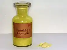 Picric acid was probably first mentioned in the alchemical writings of Johann Rudolf Glauber. Initially, it was made by nitrating substances such as animal horn, silk, indigo, and natural resin, the synthesis from indigo first being performed by Peter Woulfe during 1771.[4] The German chemist Justus von Liebig had named picric acid Kohlenstickstoffsäure (rendered in French as acide carboazotique). Picric acid was given that name by the French chemist Jean-Baptiste Dumas in 1841.[5] Its synthesis from phenol, and the correct determination of its formula, were accomplished during 1841.[6] In 1799, French chemist Jean-Joseph Welter (1763–1852) produced picric acid by treating silk with nitric acid; he found that potassium picrate could explode.[7] Not until 1830 did chemists think to use picric acid as an explosive. Before then, chemists assumed that only the salts of picric acid were explosive, not the acid itself.[8] In 1871 Hermann Sprengel proved it could be detonated[9] and most military powers used picric acid as their main high explosive material. Picric acid is also used in the analytical chemistry of metals, ores, and minerals.
