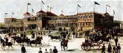 The first exposition ever held in Piedmont Park, the Piedmont Exposition of 1887, opened on October 10.[4] The main building constructed for the Exposition was 570 feet (170 m) long, 126 feet (38 m) wide, and two stories high.[5] The first day opened with 20,000 visitors.[6] Samuel J. Randall opened the Exposition with a speech on the success of the resurrected post-civil war south.[4] When his speech concluded, General Pierce M. B. Young and his men fired cannons to signal the opening of the events.[4]