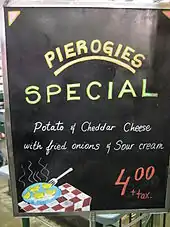 National chain restaurants in Canada feature the dish or variations. Boston Pizza has a sandwich and a pizza flavoured to taste like perogies, while Smitty's serves theirs as an appetizer deep-fried with a side of salsa.