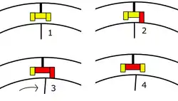 - Then the motive group releases, retracting the 'trailing' locking group.