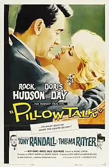Pillow Talk is a 1959 American romantic comedy film in CinemaScope directed by Michael Gordon. It features Rock Hudson, Doris Day, Tony Randall, Thelma Ritter, and Nick Adams. The film was written by Russell Rouse, Maurice Richlin, Stanley Shapiro, and Clarence Greene.