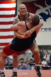 A wrestler with a pinch grip tie