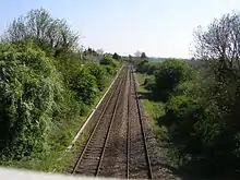 View south from road bridge over line. The heavily wooded area on the left is the site of the former station.