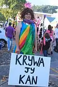 The Pink Loerie Mardi Gras and Arts Festival is an annual LGBTQ Pride carnival event and parade held in Knysna, a coastal township in the Western Cape province of South Africa. Events include their version of the Wigstock drag queen festival, a bear fest, athletic events, and an art festival.[1] It is one of the country's largest LGBTQ events.[2] Since its start in 2000 it has grown to be a significant event for the town culminating in the grand finale of Pink Loerie, Knysna Pride parade and its 1000-person after-party held on the final weekend with floats, performers, and DJs. The Knysna loerie is a green bird but the color pink has a long association with LGBTQ culture.[3]