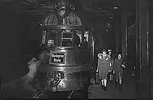 The train continued east from Halsted Station to the 1934 Century of Progress fair on the Lake Michigan shore, where it arrived for the "Wings of a Century" pageant on opening day.[2] After its showing on the Wings of a Century stage, the train was taken on a 31-state, 222-city publicity tour. More than two million people saw the train before it entered revenue service.[26]