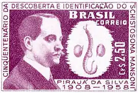 - Silva, Pirajá da (August 1908). "Contribuição para o estudo da Schistosomíase" [Contribution to the study of schistosomiasis in Bahia]. Brazil-Medico (in Portuguese). 22: 281–282.