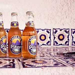 Piton is a Pilsner beer brand from the island of Saint Lucia, brewed by Windward & Leeward Brewing Limited, which is owned by Heineken.[1] The beer was named for the Gros Piton and Petit Piton mountains on the island.[2] It was first brewed on October 7, 1992.