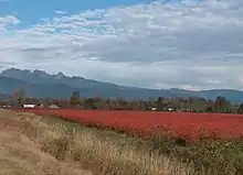Pitt Meadows' agricultural lands includes extensive large parcels located in the southwest and northeast portions of the City. Major agricultural products include cranberry and blueberry farms, horticultural products, greenhouse crops (cut flowers and specialty peppers), grazing, dairy farming, and other farm activities.[35] Agri-tourism is developed in conjunction with agricultural operations. The Meadows Maze, for example, one of the largest corn mazes in the Pacific Northwest is on the Hopcott Farm; which was purchased in 1932.[36] A growing trend, particularly in areas close to urban centers, is the use of agricultural lands for rural estate use with little or no agricultural use of land.[35]