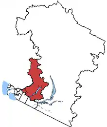 The district includes the northwestern quarter of the Fraser Valley Regional District (which includes Mission, Kent, Nicomen Island, and Lake Erock), and the District Municipalities of Maple Ridge and Pitt Meadows and their vicinities.