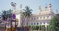 The Jumma Masjid located on the Old Poor House Road in the Cantonment area of the city is also said to be one of the oldest mosques, built by Haji Abdul Quddus in the early 19th century. It was earlier known as the Sangian Jamia Masjid but is now called the Jumma Masjid. While the raised prayer hall of the mosque has granite pillars, the building as such is a brick and mortar structure with ornate jali work and floral motifs in plaster on the facade.[23][24] The granite pillars were bought from Tipu Sultan's palace in Srirangapatna.[26]