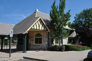 Plainfield was settled in 1684 by Quakers,[26] and incorporated as a city in 1869. Formerly a bedroom suburb in the New York metropolitan area, it has become the urban center of 10 closely allied municipalities, with diversified industries, including printing and the manufacture of chemicals, clothing, electronic equipment, and vehicular parts. Among the several 18th-century buildings remaining are a Friends' meetinghouse (1788),[27] the Martine house (1717), and the Nathaniel Drake House (1746), known as George Washington's headquarters during the Battle of Short Hills in June 1777.[28][29] Nearby Washington Rock is a prominent point of the Watchung Mountains and is reputed to be the vantage point from which Washington watched British troop movements.[30][31]