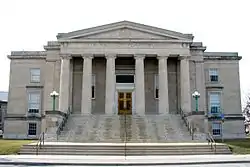 Plattsburgh Normal School was founded in 1889. It burned in 1929, and relocated to City Hall for three years.[7] In 1932 the college moved into the current Hawkins Hall which became the base of the modern campus. In 1948 it became State University of New York at Plattsburgh.