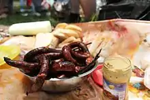 Pleșcoi sausages are a Romanian sausage made from mutton spiced with chili peppers and garlic,[1] traditionally made in and around the Pleșcoi village, in the Buzău County of Romania.[2][3] If the mutton contains too much fat, it can be balanced with beef, but with no more than half of the mutton content.[3]