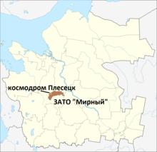Plesetsk Cosmodrome (Russian: Космодро́м «Плесе́цк», tr. Kosmodróm "Plesétsk", IPA: [kəsmɐˈdrom plʲɪˈsʲet͡sk]) is a Russian spaceport located in Mirny, Arkhangelsk Oblast, about 800 km north of Moscow and approximately 200 km south of Arkhangelsk, the cosmodrome dates from 1957. Originally developed as an ICBM site for the R-7 missile, it also served for numerous satellite launches using the R-7 and other rockets. Its high latitude makes it useful only for certain types of launches, especially the Molniya orbits, so for much of the site's history it functioned as a secondary location, with most orbital launches taking place from Baikonur, in the Kazakh SSR. With the end of the Soviet Union, Baikonur became a foreign territory, and Kazakhstan charged $115 million usage fees annually. Consequently, Plesetsk has seen considerably more activity since the 2000s.