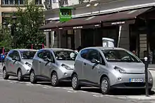 As of December 2017, the Renault Zoe is the all-time best-selling plug-in electric vehicle in the French market with 48,582 units registered since 2012.[1][11] Ranking second was the Kangoo Z.E. utility van with 15,032 units registered through September 2016.[59][50][46][43][60][61] As of September 2016, the Nissan Leaf ranked third with 8,979 units, followed by the Bolloré Bluecar with 5,689 units.[1] Most units of the Bluecar are in operation for the Autolib' car sharing service in Paris, and similar schemes in Lyon and Bordeaux.[62]