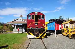 | 2 | 44-Ton | GE | Out of service | ex. US Army, exx Wolfeboro, exxx Goodwin, exxxx North Stratford, exxxxx NEGS | Currently out of service in Lakeport | Originally built for the US Army Railroad, this switcher was sold to the state of New Hampshire in 1976 and was used by the Wolfeboro, Goodwin and North Stratford railroads and New England Southern. Sold to the Hobo Railroad in 1992, the engine has been out of service since the late 1990s.[6] | |