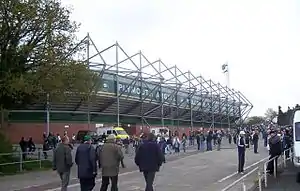 In the summer of 2007, the club, having failed to persuade the UK authorities[8] of the case for retaining a standing terrace, decided to add 3,500 temporary seats to the Mayflower enclosure,[9] dropping the capacity to 19,888 from 20,922. In December 2009 it was announced that the stadium was to be one of 12 chosen to host matches during the World Cup 2018, should England's bid be successful.[10] The then Argyle chairman Paul Stapleton stated that work on a new South Stand at Home Park would start in 2010. However, England failed to be chosen for the 2018 tournament, and Plymouth Argyle entered administration in March 2011. After selling the stadium back to the council on 14 October 2011 for £1.6 million,[11] this project was in serious doubt.
