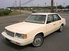 The Plymouth Caravelle is a mid-size sedan that was introduced by Plymouth as a 1983 Canadian model. The Caravelle came to the United States in 1985 to replace the Chrysler E-Class. It was essentially identical to the concurrent Dodge 600. It was replaced by the Plymouth Acclaim in 1989. The Caravelle was Plymouth's first front wheel drive mid-size sedan.