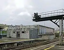 The rebuilding work of 1938 meant more signalling alterations. On 22 January 1938 the timber West box was lifted up and moved to a new position clear of the proposed works, being brought back into use on 27 January 1938. At the other end of the station the East box was closed and a new 79 feet (24.1 m) structure built, again on the north side of the line, which was brought into use on 25 June 1939.[17]