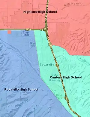 - "School District 25 High School Boundaries Archived 2011-12-19 at the Wayback Machine." Pocatello/Chubbuck School District. Retrieved February 22, 2012.