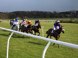 In Ireland, point-to-point races are run under the Regulations for Point to Point Steeplechases of the Irish National Hunt Steeplechase Committee (INHSC) of the (Irish) Turf Club.[4][6] Point-to-point races are distinct from "flapper" races, which are outside the remit of the INHSC.[7][8][9] Since the Horse Racing Ireland Act 2016, Horse Racing Ireland (HRI) has responsibility within the Republic of Ireland for licensing meetings and collecting and disbursing fees for point-to-point meetings; the arrangement of each meeting is done largely on a voluntary basis by a local hunt club or other local committee.[10][11][12] HRI had before 2016 provided personnel and funding to hunt clubs for prize money and meeting costs. There was opposition to the 2016 act's increased authority as interfering in a system that was already working well.[13][10]