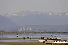 After the September 11 attacks of 2001, security at border crossings—including Point Roberts—was increased, leading to long delays for residents.[14] The Canadian border was closed to non-essential travel in March 2020 due to the COVID-19 pandemic, which had been worsening in both countries but especially in the United States.[15][16] A study found that Point Roberts had lost 80 percent of its business and hundreds of seasonal residents as a result of the pandemic and border shutdown. The area, described as a "ghost town" by the local chamber of commerce director, had no confirmed cases of COVID-19 as of September 2020.[17] A temporary ferry was set up in August 2020 to connect Point Roberts to the mainland, initially to Blaine and later to Bellingham.[18]