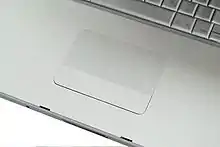 A touchpad or trackpad is a flat surface that can detect finger contact. It is a stationary pointing device, commonly used on laptop computers. At least one physical button normally comes with the touchpad, but the user can also generate a mouse click by tapping on the pad. Advanced features include pressure sensitivity and special gestures such as scrolling by moving one's finger along an edge.