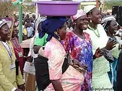 The Pojulu, like other Bari-speaking people, believe in a Supreme Being god (ŋun) who is the creator. They also believe in the existence of spirits of the departed ancestors. Many of these beliefs are now fading under the influence of modernity and Christianity. Choir in Pojulu