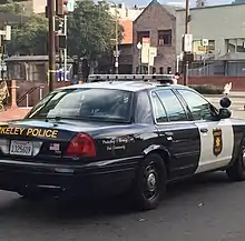 Many enforcement agencies now use some "ghost cars" or "stealth cars" with smooth tops and minimal graphics for traffic enforcement.[15] These vehicles have markings that are visible only at certain angles, such as from the rear or sides, making these cars appear unmarked when viewed from the front.[16] These vehicles may meet the letter of the law as marked patrol vehicles, but are not as easily identifiable at a distance as a regular marked police vehicle. For public safety reasons, some jurisdictions do not allow officers in unmarked cars to pull over drivers.[17] The graphics on a ghost car, minimal though they may be, are deemed sufficient in some jurisdictions to identify the vehicle as a legitimate police vehicle. Depending on the jurisdiction, such vehicles may or may not be permitted to engage in pursuits.