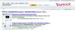 A blogger from Washington has since taken credit for starting this tactic, though the phrase had been in heavy use following its adoption as a catchphrase by the Dick Gephardt campaign.[5] For a time, Bush's official biography had also become the top result for both "miserable" and "failure".[6]