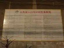 A house in Qufu decorated with the text of the provincial population policy and family planning regulations