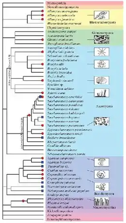 Besides plants and animals, the evolutionary history of various fungal species is dotted by past and recent whole-genome duplication events (see Albertin and Marullo 2012[70] for review). Several examples of polyploids are known: