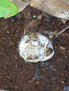 | An acid-eroded shell of Pommerhelix monacha in the Mount Wilson rainforest, Blue Mountains National Park, Australia | |
