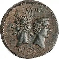 Cantarelli has argued that it is possible that Attica was no longer alive in 32 BC because she is not mentioned by Nepos among those called to her father's deathbed.[18] E. Rapp believed that coins from Nemausus which depict Agrippa with a beard (a sign of public mourning in Roman culture) indicate that she died in 29 BC since the coin celebrates Agrippa's victory over Antony and Cleopatra which was in 30 BC. Reinhold agreed that the coins could be an indication of Agrippa's mourning after a death, but rejected Rapp's dating of them to 29 BC.[7]