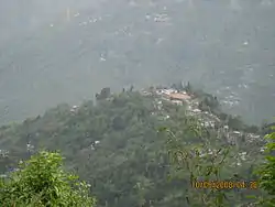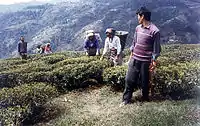 The map alongside shows a portion of the southern portion of the Darjeeling Himalayan hill region in the Darjeeling district. In the Darjeeling Sadar subdivision 61.00% of the total population lives in the rural areas and 39.00% of the population lives in the urban areas. In the Mirik subdivision 80.11% of the total population lives in rural areas and 19.89% lives in urban areas.[3][4] There are 78 tea gardens/ estates (the figure varies slightly according to different sources), in the district, producing and largely exporting Darjeeling tea. It engages a large proportion of the population directly/ indirectly.[5] Some tea gardens were identified in the 2011 census as census towns or villages.[6] Such places are marked in the map as CT (census town) or R (rural/ urban centre). Specific tea estate pages are marked TE.